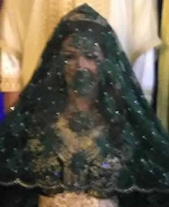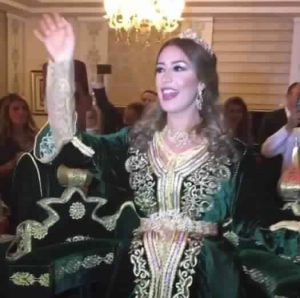 ورقصت جنات على أنغام الموسيقى المغربية مع خطيبها، كما ارتدت الحجات المغربي في بداية الحفل.