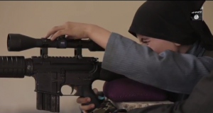 وأضاف الطفل المدعو بـ”يوسف” ويعيش فى الرقة السورية موجهًا حديثه لـ”ترامب” ويتحدث الإنجليزية ويحمل سلاح: “جهز نفسك للقتال المعركة بدأت للتو”.