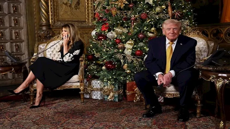 ويقضي ترامب عطلة عيد الميلاد في مقر إقامته بولاية فلوريدا، حيث ظهر برفقة زوجته في قاعة كبيرة تتوسطها شجرة عيد الميلاد وتحتها الهدايا.