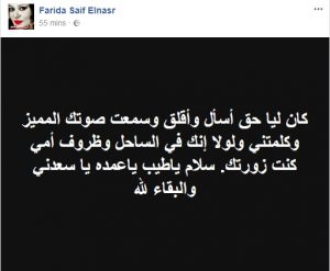 و اعيدت الشائعة مرة أخرى، قبل أقل من ساعة، بسبب حساب على “فيس بوك” منسوب للفنانة فريدة سيف النصر، أعلن نبأ الوفاة مرة أخرى، لكن اتضح أن الحساب مزيف ولا يمت للفنانة الكبيرة بصلة.
