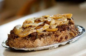 6-تقلى شرائح البصل في الزيت حتي تحمر وترفع وتصفى.