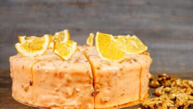 كيكة الجزر مع صلصة البرتقال